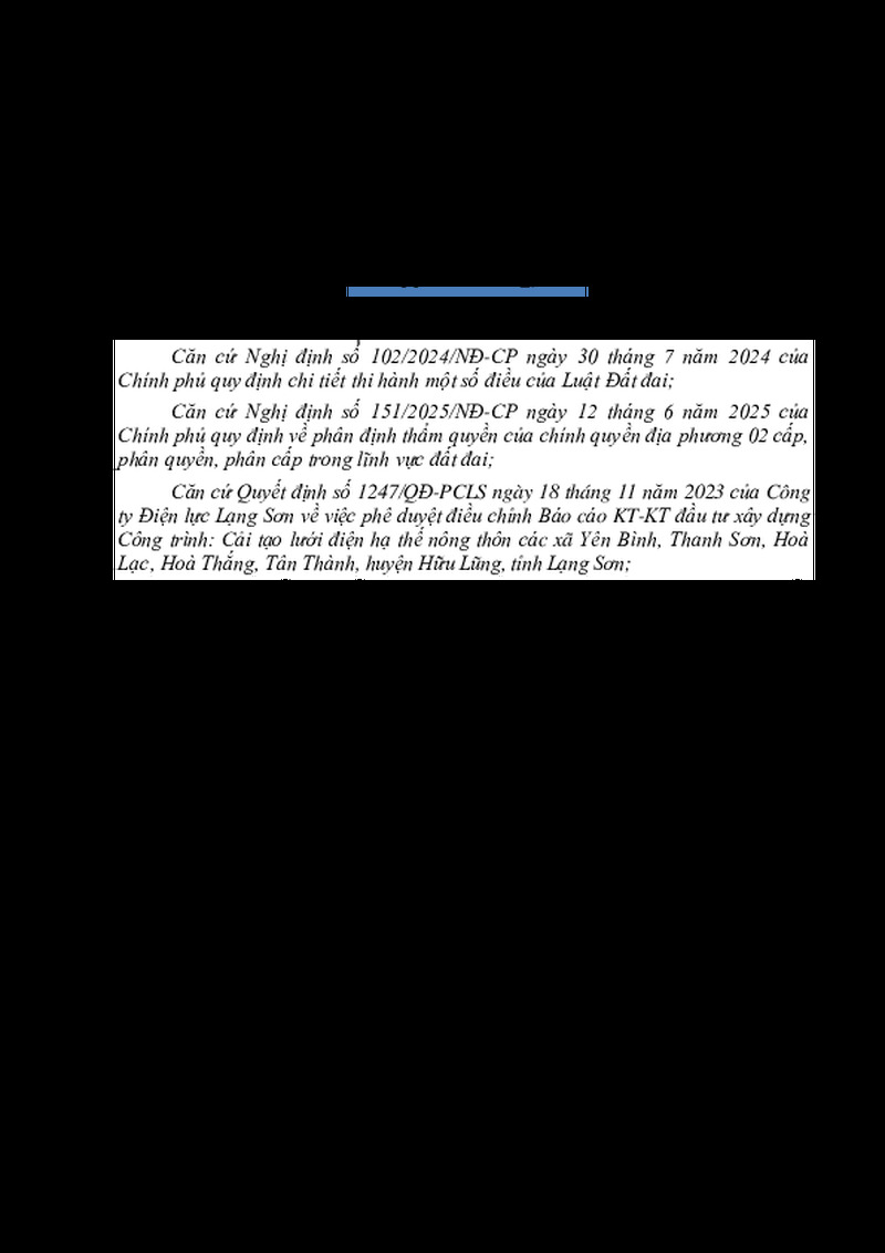 | Tiêu đề văn bản | THÔNG BÁO THU HỒI ĐẤT Để thực hiện công trình: Cải tạo lưới điện hạ thế nông thôn các xã Yên Bình, Thanh Sơn, Hoà Lạc, Hoà Thắng, Tân Thành huyện Hữu Lũng, tỉnh Lạng Sơn | ||