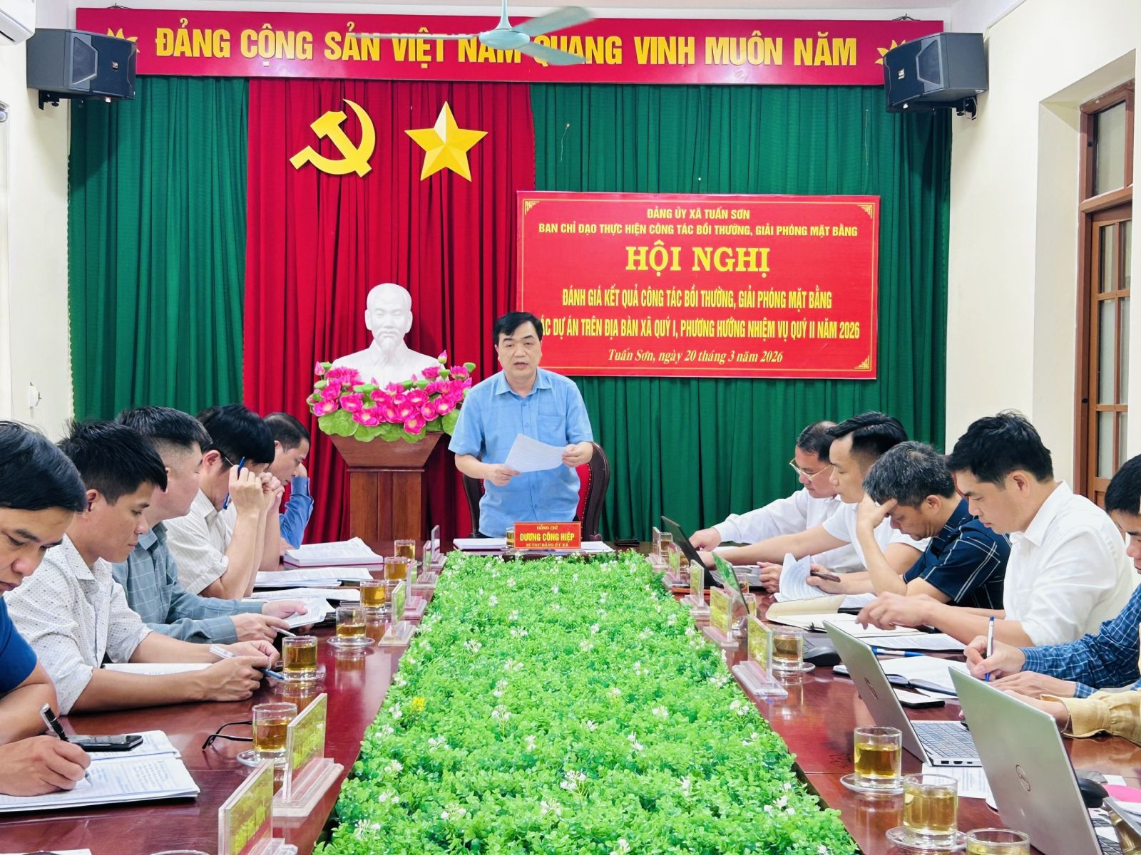 Chiều ngày 20/3, Ban Chỉ đạo thực hiện công tác bồi thường giải phóng mặt bằng xã Tuấn Sơn tổ chức Hội nghị đánh giá kết quả công tác bồi thường, giải phóng mặt bằng các Dự án trên địa bàn Quý I, phương hướng nhiệm vụ Quý II, năm 2026. Đồng chí Dương Công Hiệp Bí thư Đảng ủy xã, Trưởng Ban Chỉ đạo chủ trì Hội nghị.