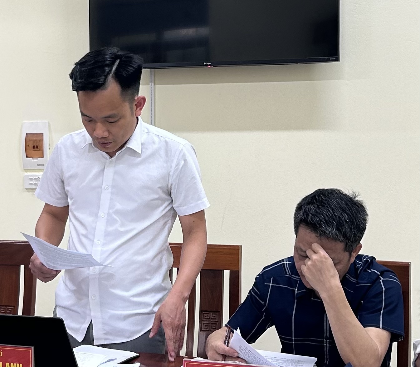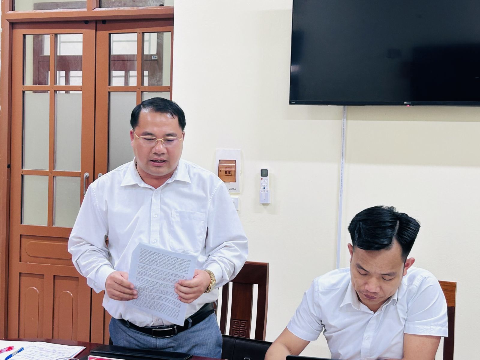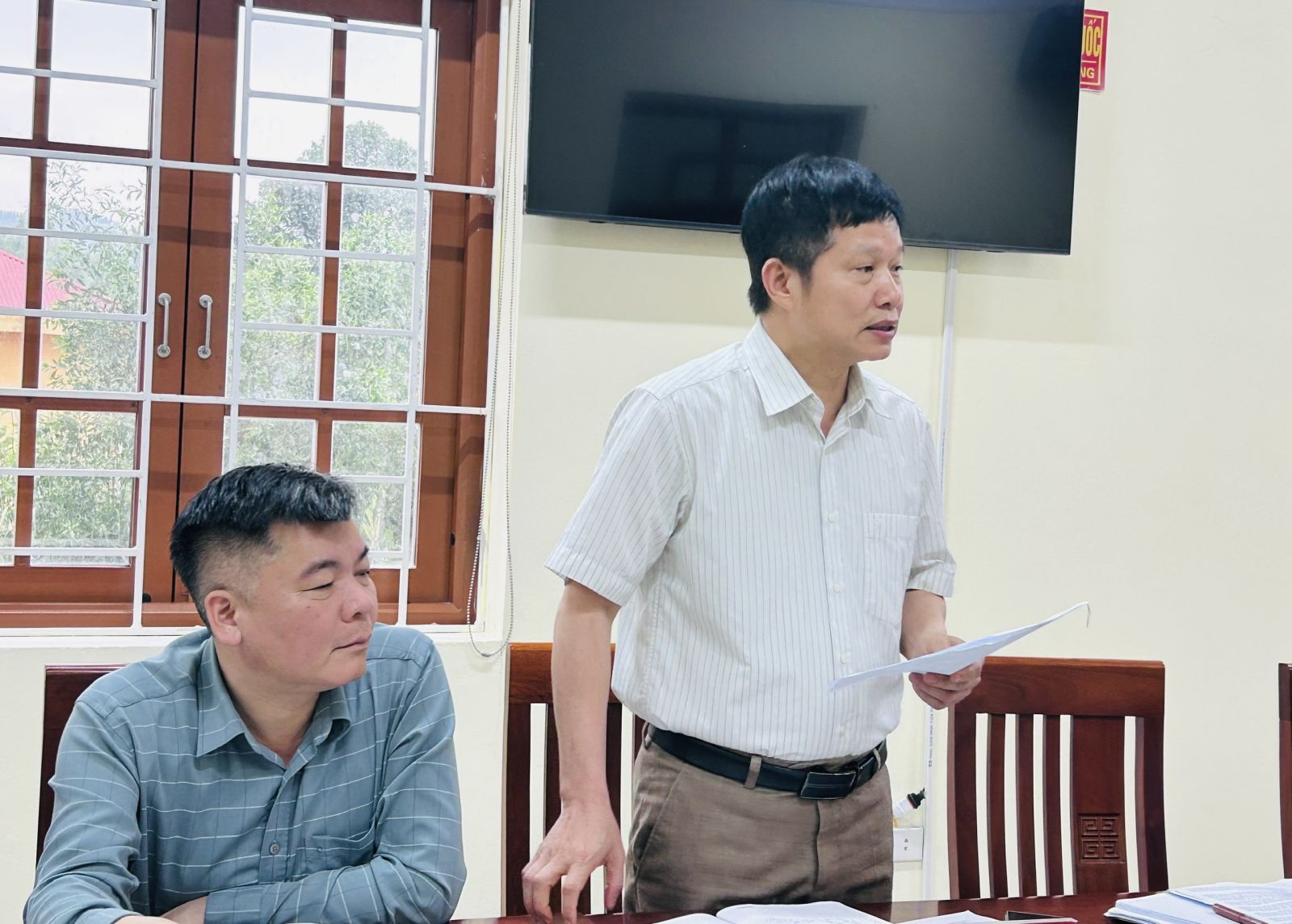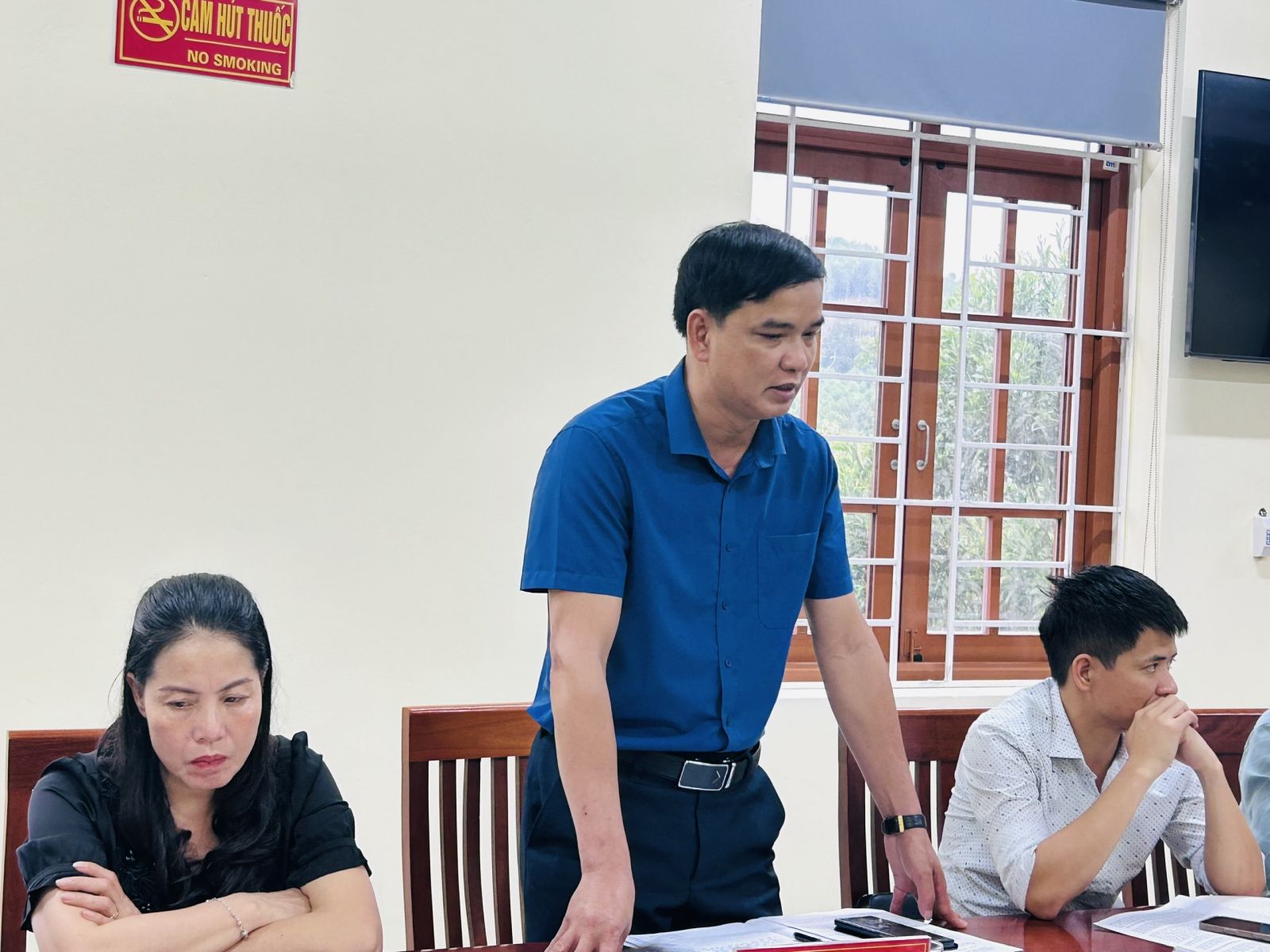Đồng chí Trịnh Tuấn Anh, Phó chủ tịch UBND xã báo cáo kết quả thực hiện