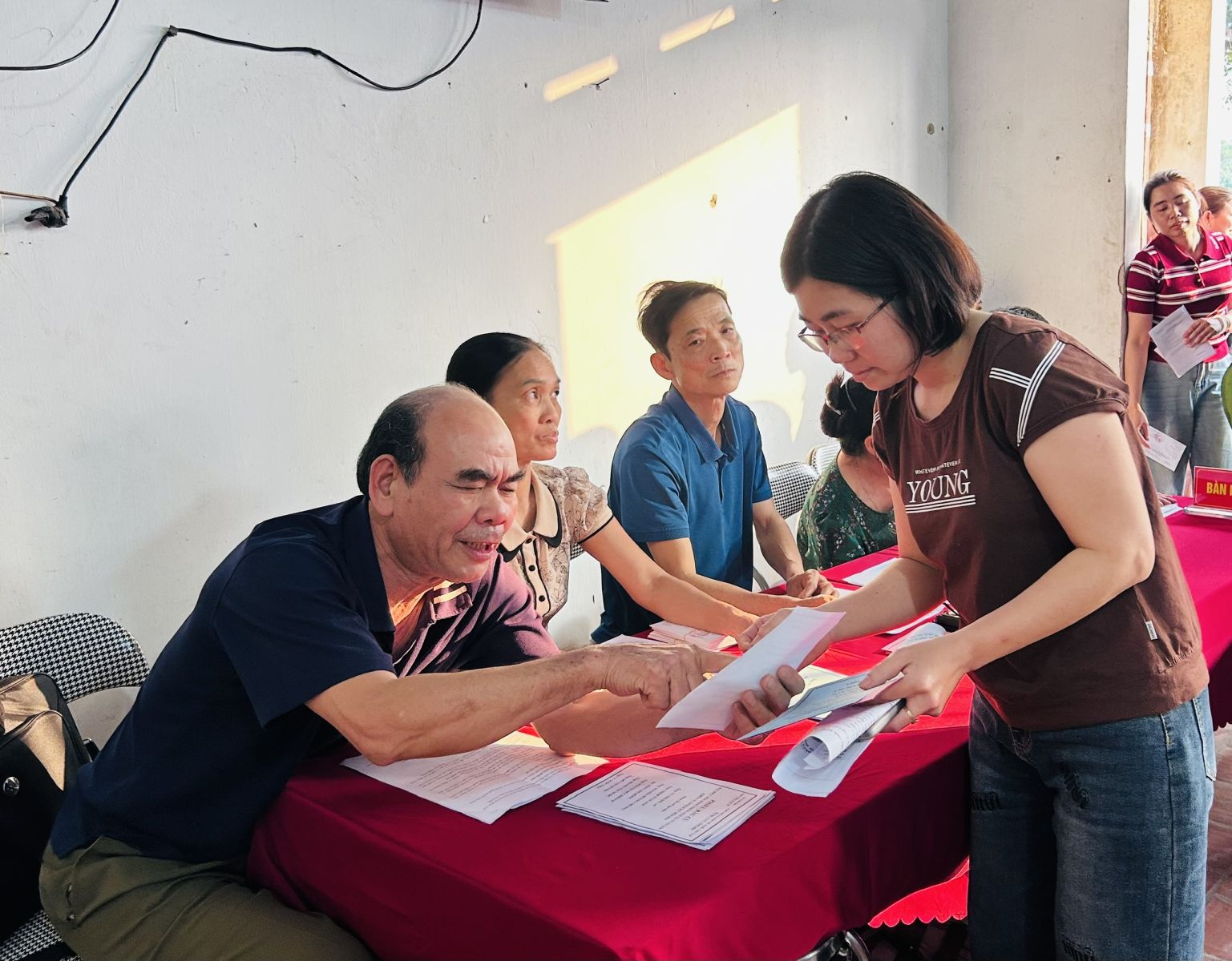 Tổ bầu cử hướng dẫn cử tri và phát phiếu bầu