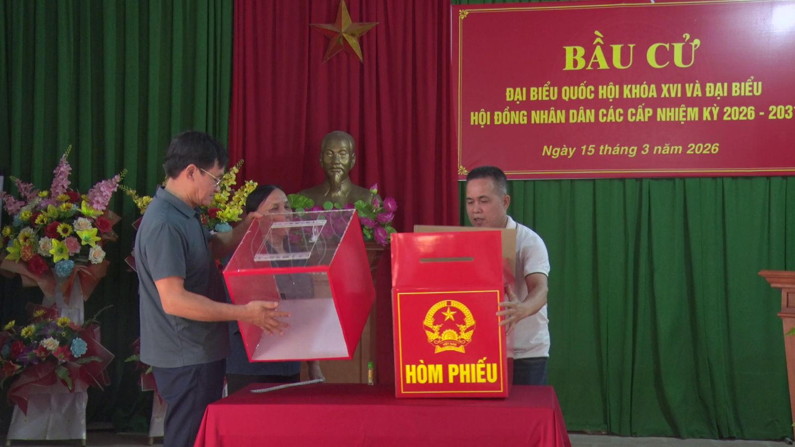 Tổ bầu cử kiểm tra và niêm phong hòm phiếu