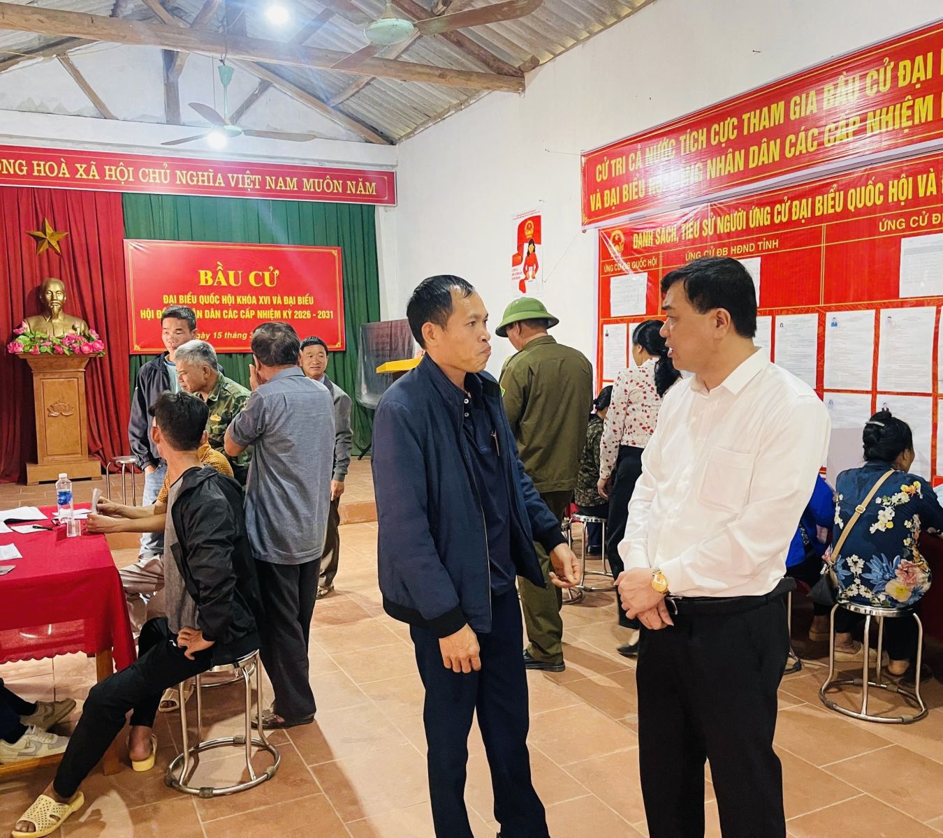 Đồng chí Dương Công Hiệp đi kiểm tra công tác bầu cử tại khu vực bỏ phiếu số 12 thôn Keo