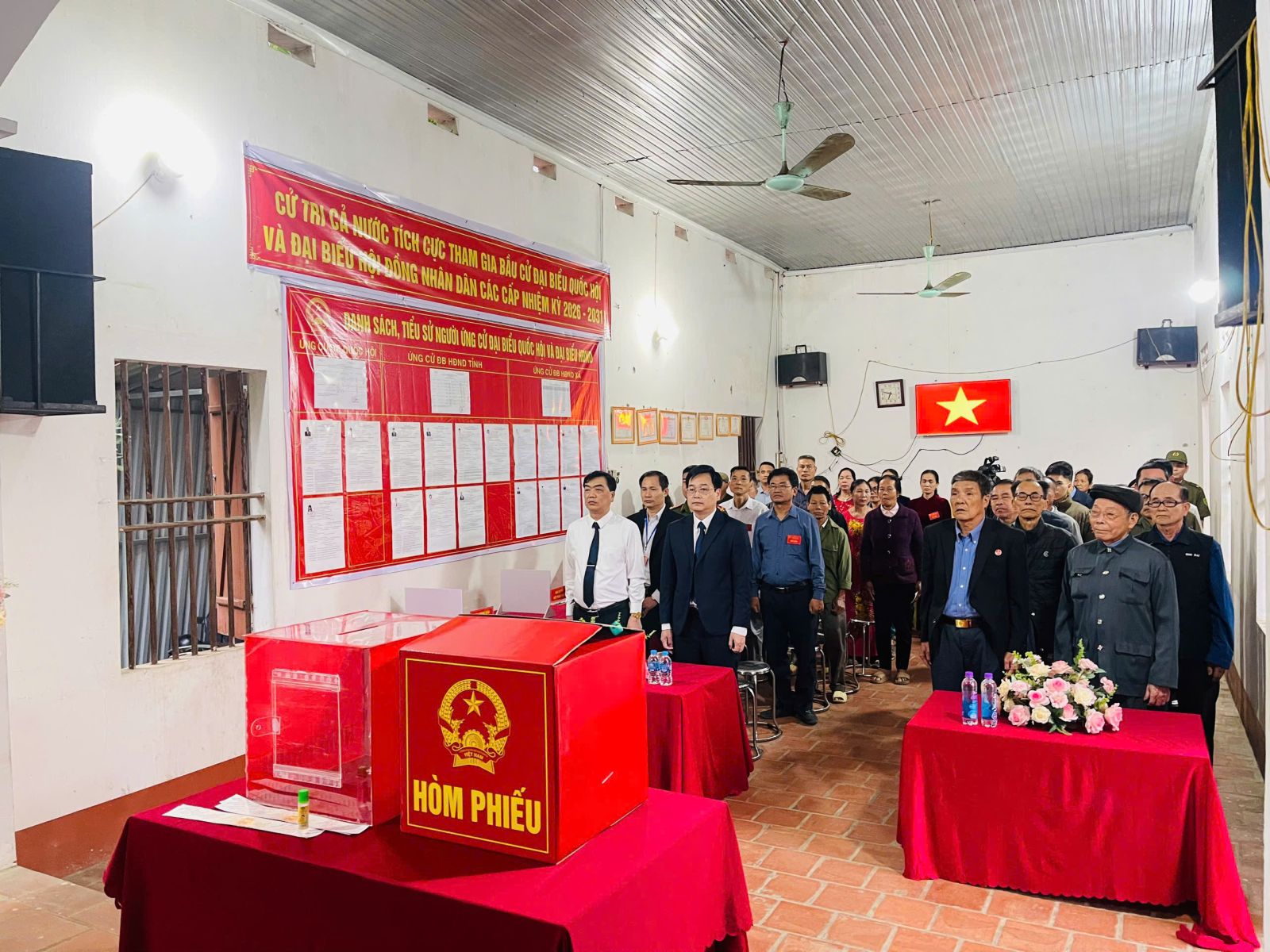Đồng chí Vũ Hoàng Quý dự khai mạc tại khu vực bỏ phiếu số 18 thôn Cã Ngoài