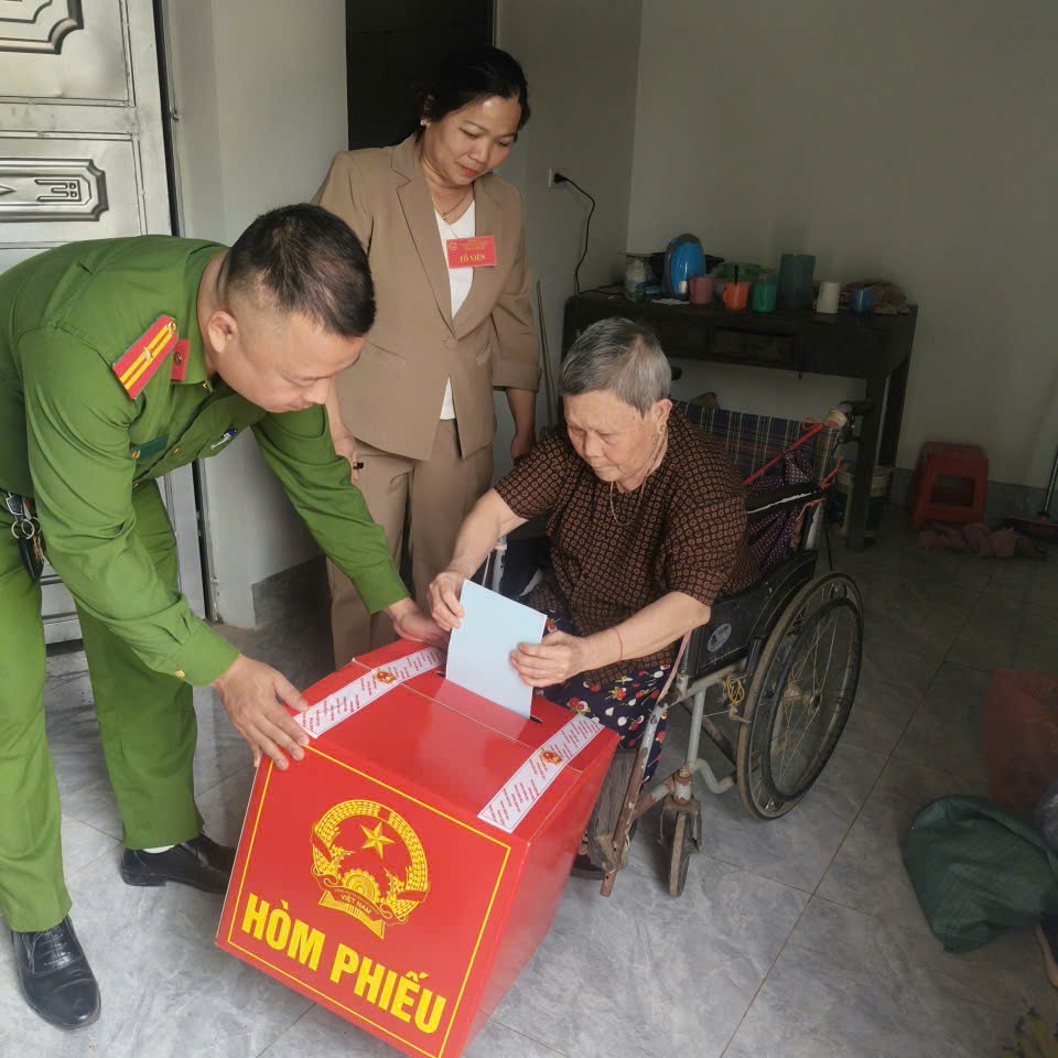 Đặc biệt, chính quyền địa phương đã quan tâm tạo điều kiện để mọi cử tri đều có thể tham gia bầu cử. Đối với những cử tri cao tuổi, sức khỏe yếu hoặc gặp khó khăn trong việc đi lại, các tổ bầu cử đã bố trí lực lượng hỗ trợ hoặc mang hòm phiếu phụ đến tận nơi để cử tri thực hiện quyền bầu cử của mình.