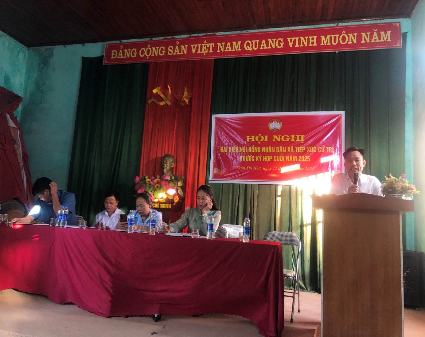 Chiều ngày 12/11/2025, Thường trực HĐND, UBND, Ủy ban MTTQ Việt Nam xã Tuấn Sơn phối hợp với Tổ đại biểu HĐND xã tổ chức Hội nghị tiếp xúc cử tri tại thôn Thị Hòa, xã Tuấn Sơn, tỉnh Lạng Sơn trước kỳ họp thường lệ cuối năm 2025 của HĐND xã khóa I, nhiệm kỳ 2021-2026. Tham dự Hội nghị có đồng chí Đinh Thị Hoa, Chủ tịch Ủy ban Mặt trận Tổ quốc Việt Nam xã, Tổ trưởng Tổ đại biểu số 4 HĐND xã; đồng chí Đàm Văn Đàn, Phó Chủ tịch HĐND xã; đồng chí Trịnh Tuấn Anh, Phó Chủ tịch UBND xã; đại diện Văn phòng HĐND và UBND xã; Tổ đại biểu số 4 HĐND xã và đại diện cử tri của 05 thôn: Hố Vắt, Thị Hòa, Na Hố, Cốc Lùng, Xóm Chùa.