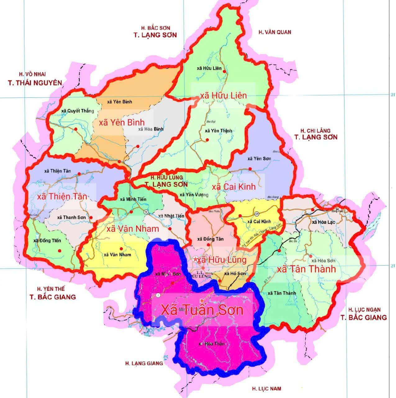 Xã Tuấn Sơn thuộc khu vực I của tỉnh Lạng Sơn, phía Bắc giáp với xã Hữu Lũng, phía Đông giáp với xã Tân Thành, tỉnh Lạng Sơn, phía Nam giáp với xã Bảo Đài và phía Tây giáp với xã Kép của tỉnh Bắc Ninh; diện tích tự nhiên là 111,21 km2, gồm 30 thôn với tổng dân số 20.611 người, gồm 05 dân tộc chính ( Kinh, Tày, Nùng, Mường, Cao lan) và một số dân tộc khác.
