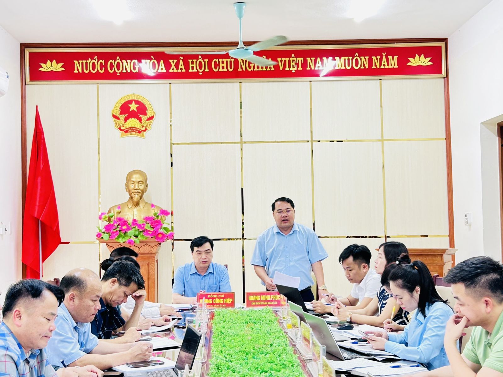 Đồng chí Hoàng Minh Phúc, Pho bí thư Đảng ủy, Chủ tịch UBND xã phát biểu kết luận cuộc họp
