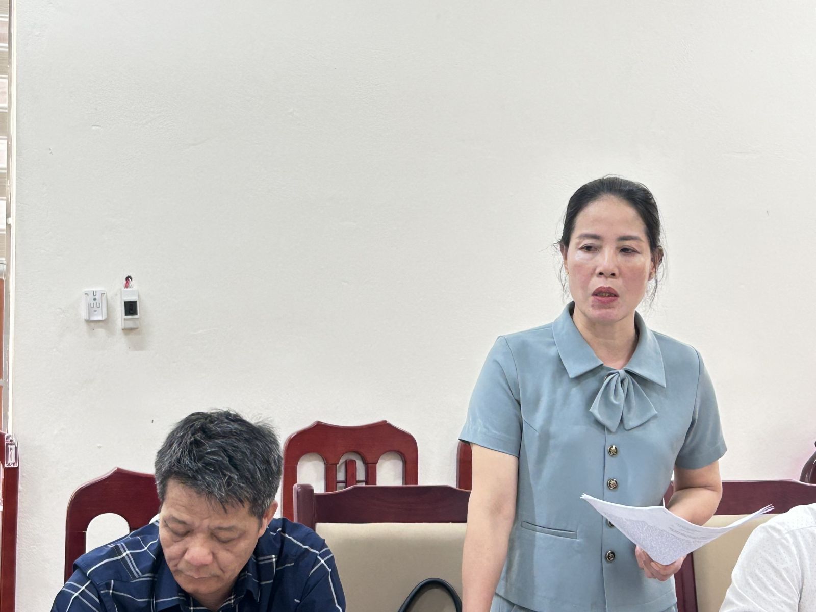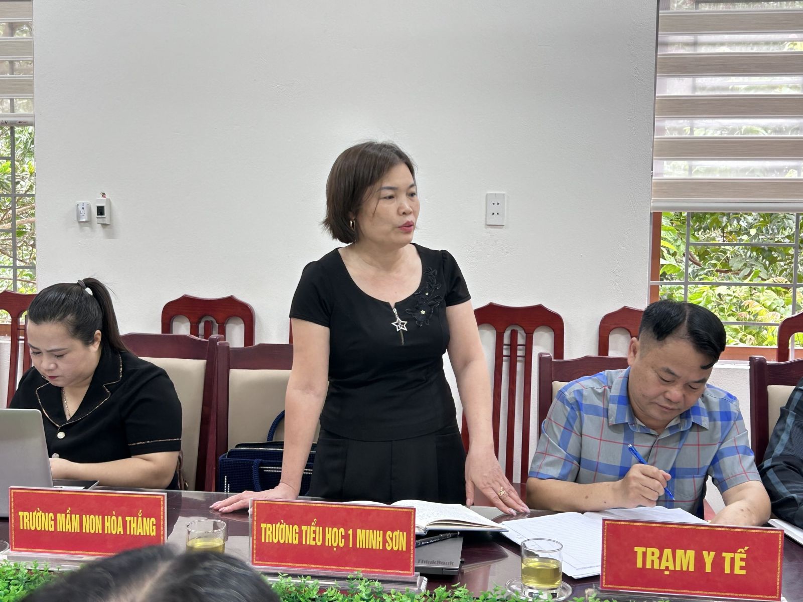 Hiệu trưởng Trường Tiểu học 1 Minh Sơn trình bày ý kiến tại cuộc họp