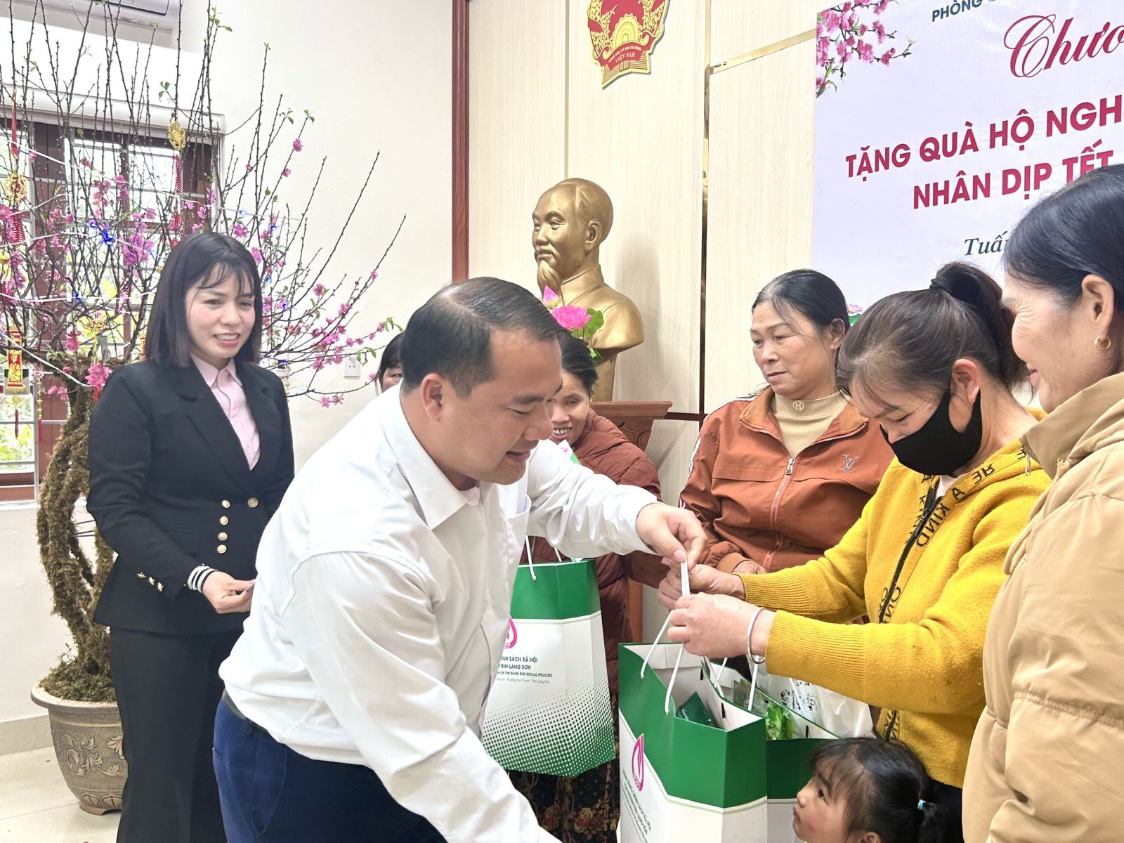 Ngân Hàng Chính sách xã hội tỉnh Lạng Sơn – Phòng giao dịch ngân hàng chính sách xã hội Hữu Lũng trao 10 xuất quà cho hộ nghèo, gia đình chính sách, mỗi xuất trị giá 600 nghìn đồng.
