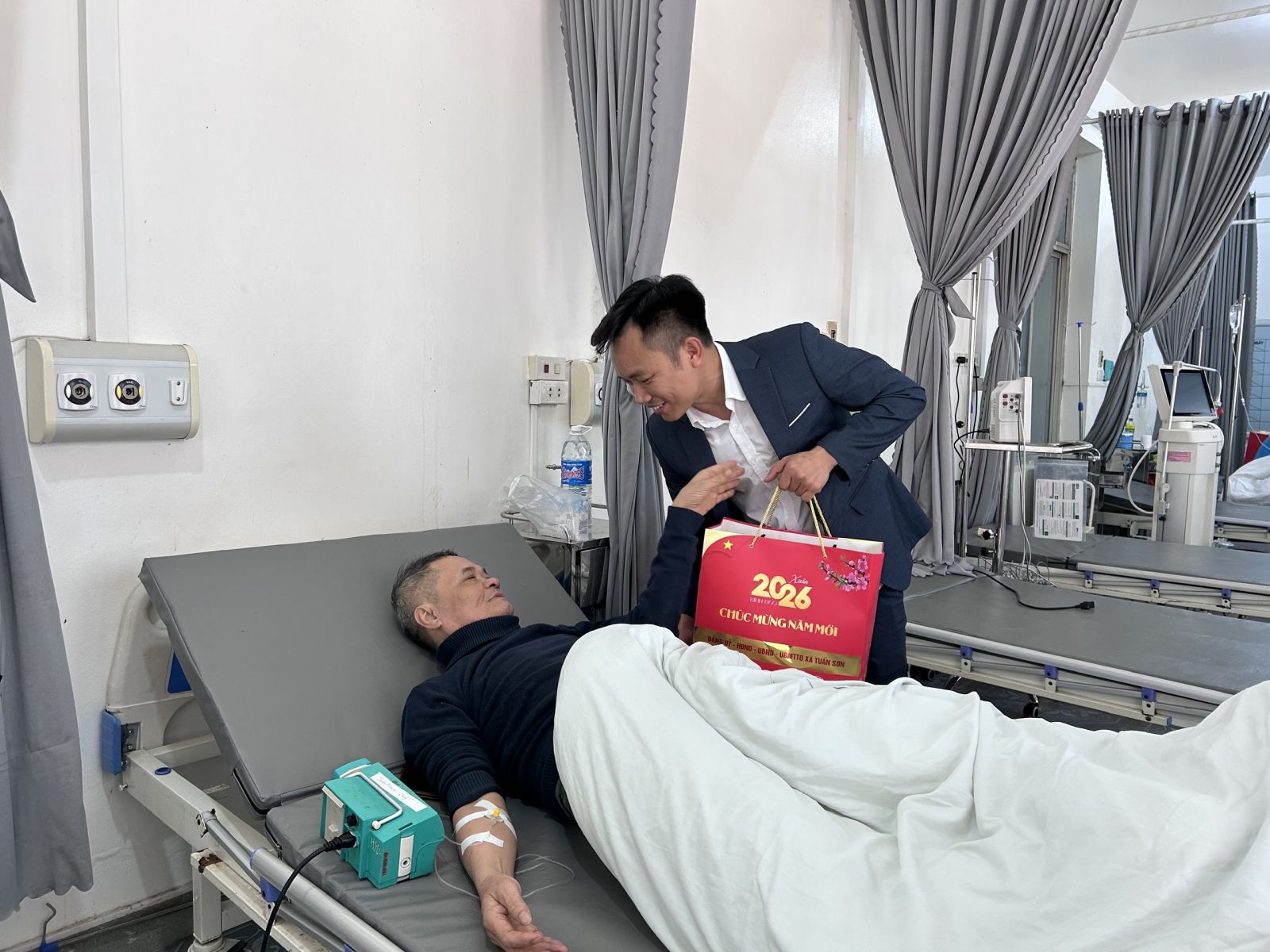 Đồng Chí Trịnh Tuấn Anh Phó chủ tịch UBND xã trao quà cho bệnh nhân đang điều trị tại Khoa hồi sức cấp cứu