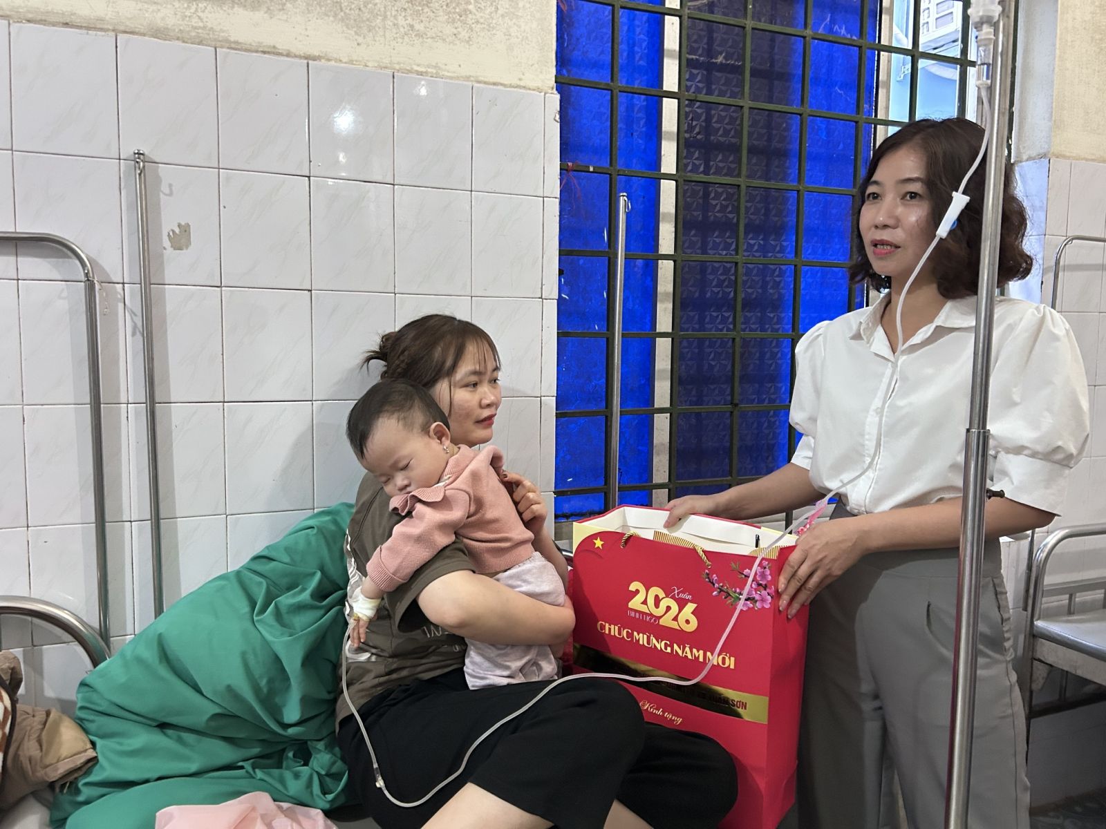 Đồng chí Triệu Thị Hồng Nhung trao quà cho bệnh nhân điều trị tại khoa Truyền nhiễm
