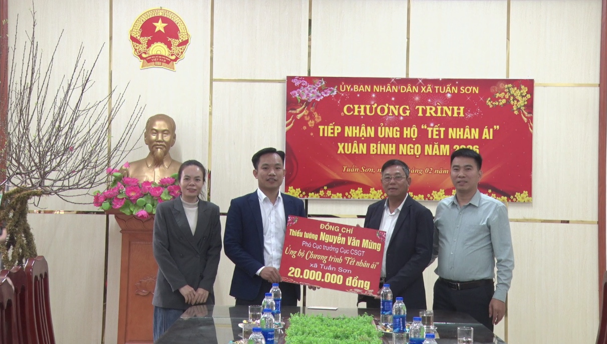 Cũng trong sáng ngày 04/02/20256, Chương trình “Tết nhân ái” của xã Tuấn Sơn đã nhận được sự ủng hộ của Công ty Cổ phần Đầu tư và Xây dựng vận tải Thành Long, phường Yên Dũng, tỉnh Bắc Ninh và và Công ty Cổ phần Công nghệ Hà Cường, xã Lạng Giang, Bắc Ninh mỗi đơn vị 10 triệu đồng.