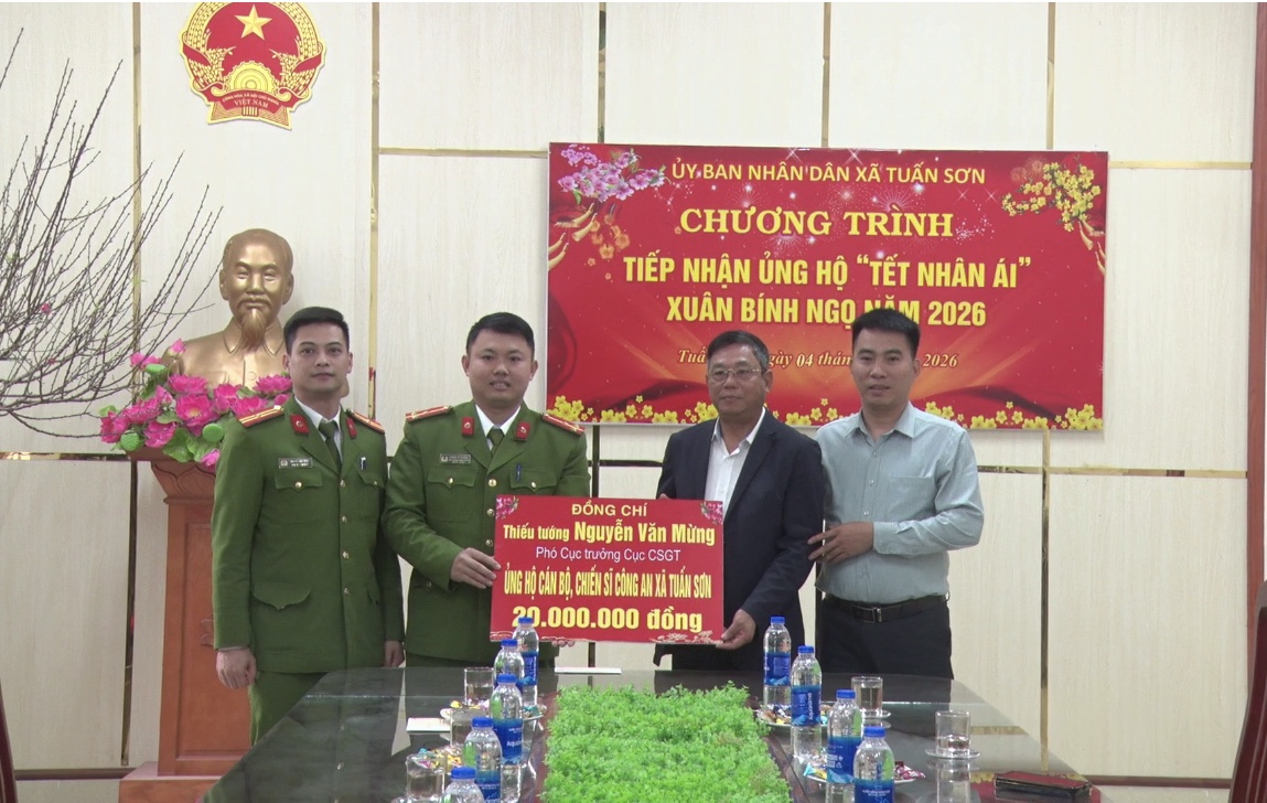 Trong Chương trình công tác, sáng nay, ngày 04/02/2026, đồng chí Thiếu tướng Nguyễn Văn Mừng, Phó Cục trưởng Cục Cảnh sát giao thông đã đến ủng hộ Chương trình “Tết nhân ái” tại xã Tuấn Sơn.