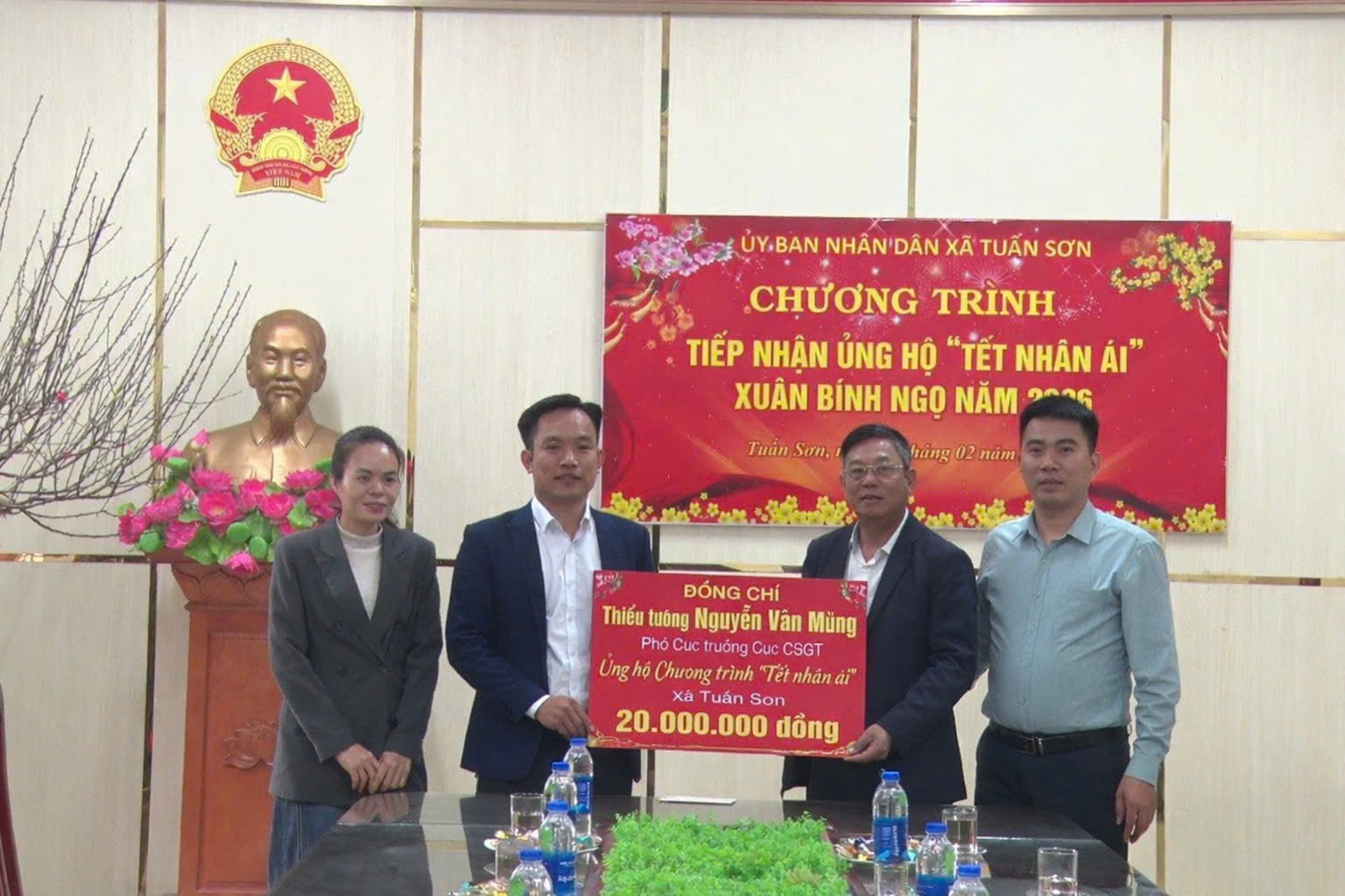 Đồng chí thiếu tướng Nguyễn Văn Mừng, Phó Cục trưởng Cục Cảnh sát giao thông ủng hộ Chương trình “Tết nhân ái” tại xã Tuấn Sơn