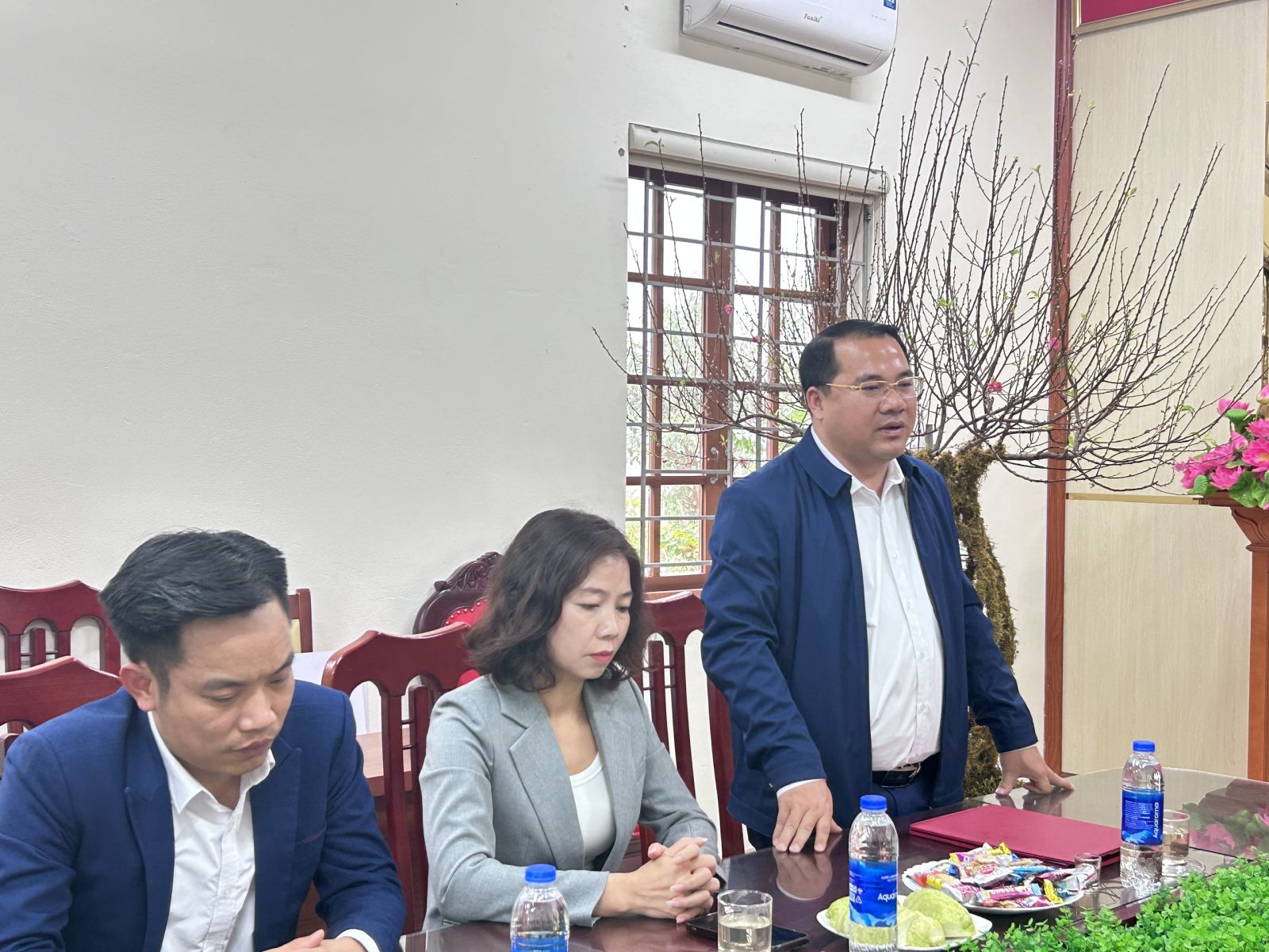 Đồng chí Hoàng Minh Phúc, Phó bí thư Đảng ủy, Chủ tịch UBND xã Tuấn Sơn phát biểu tại buổi gặp mặt