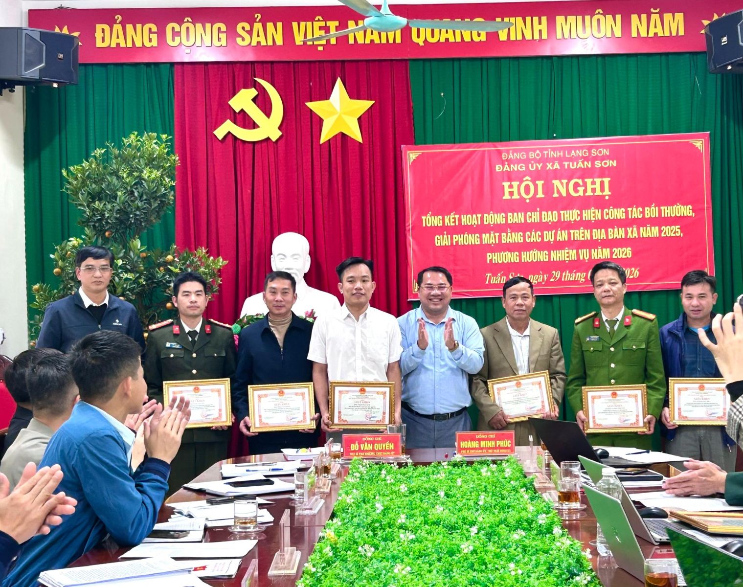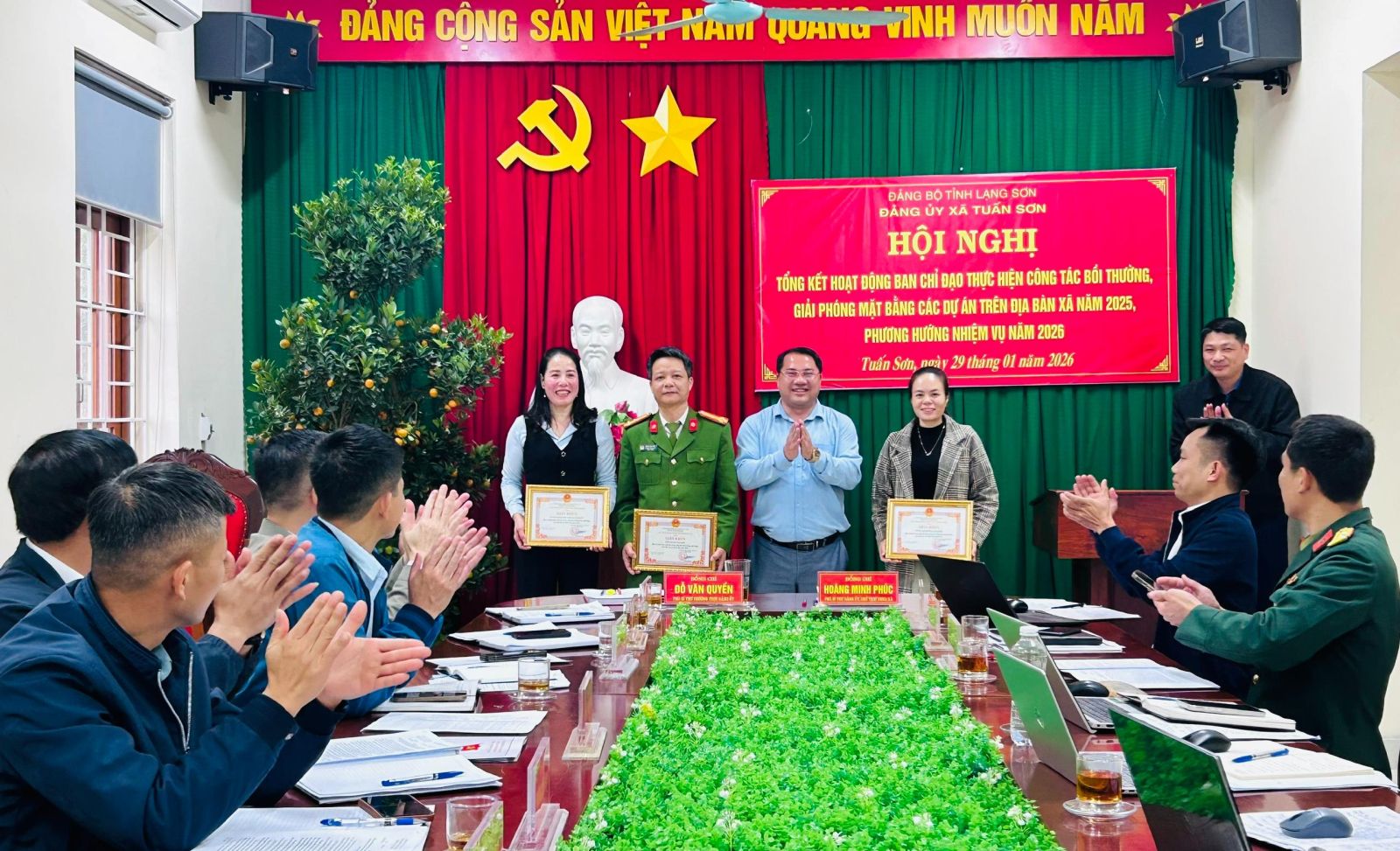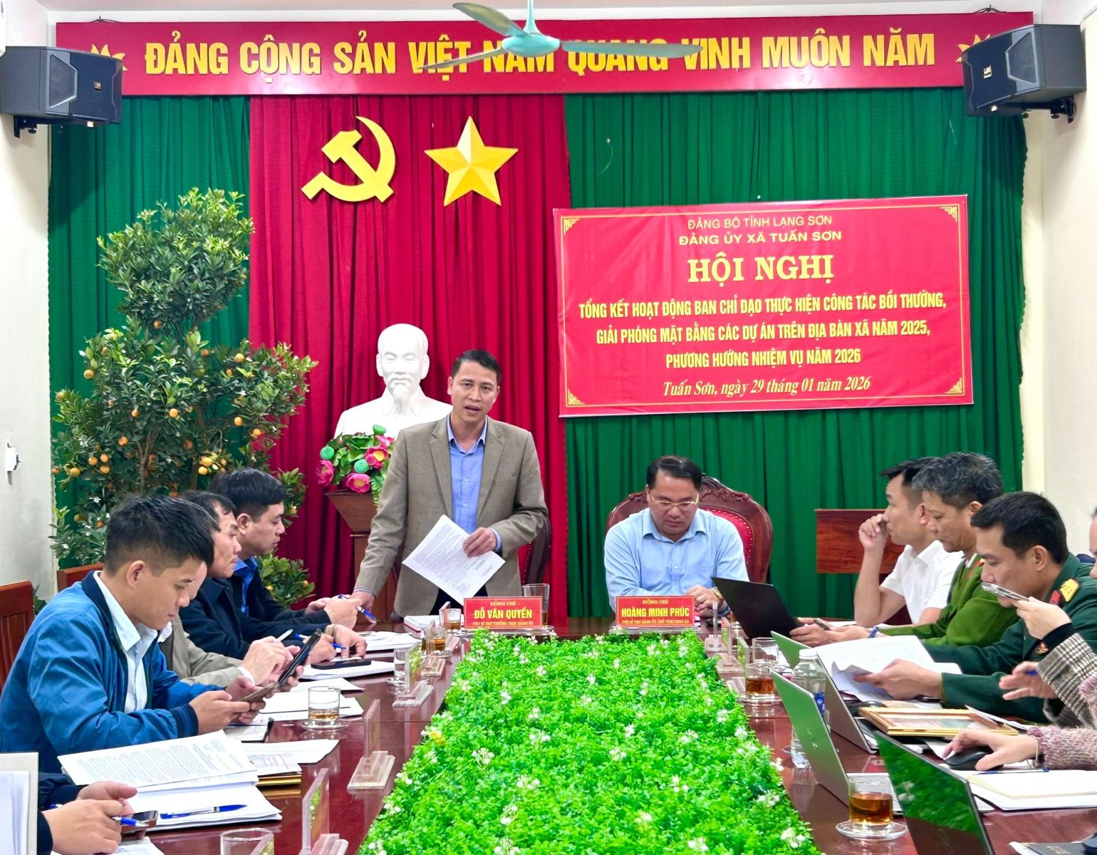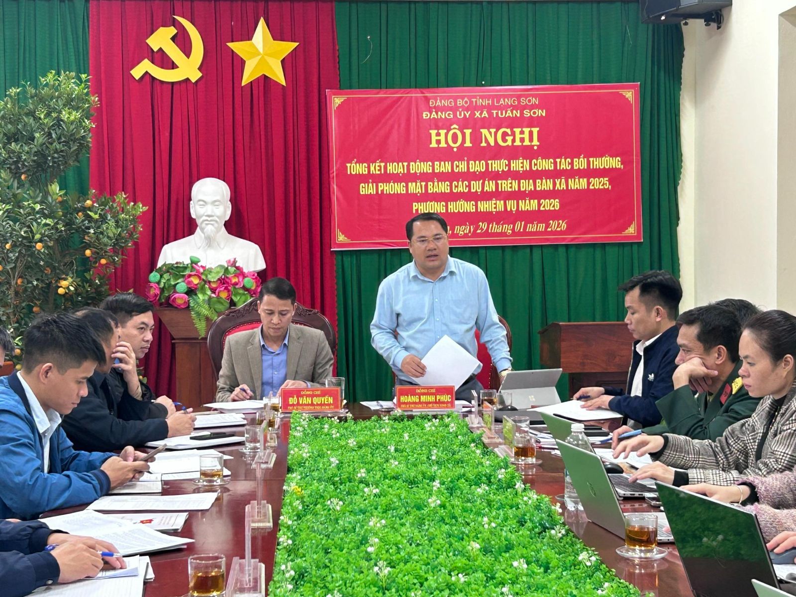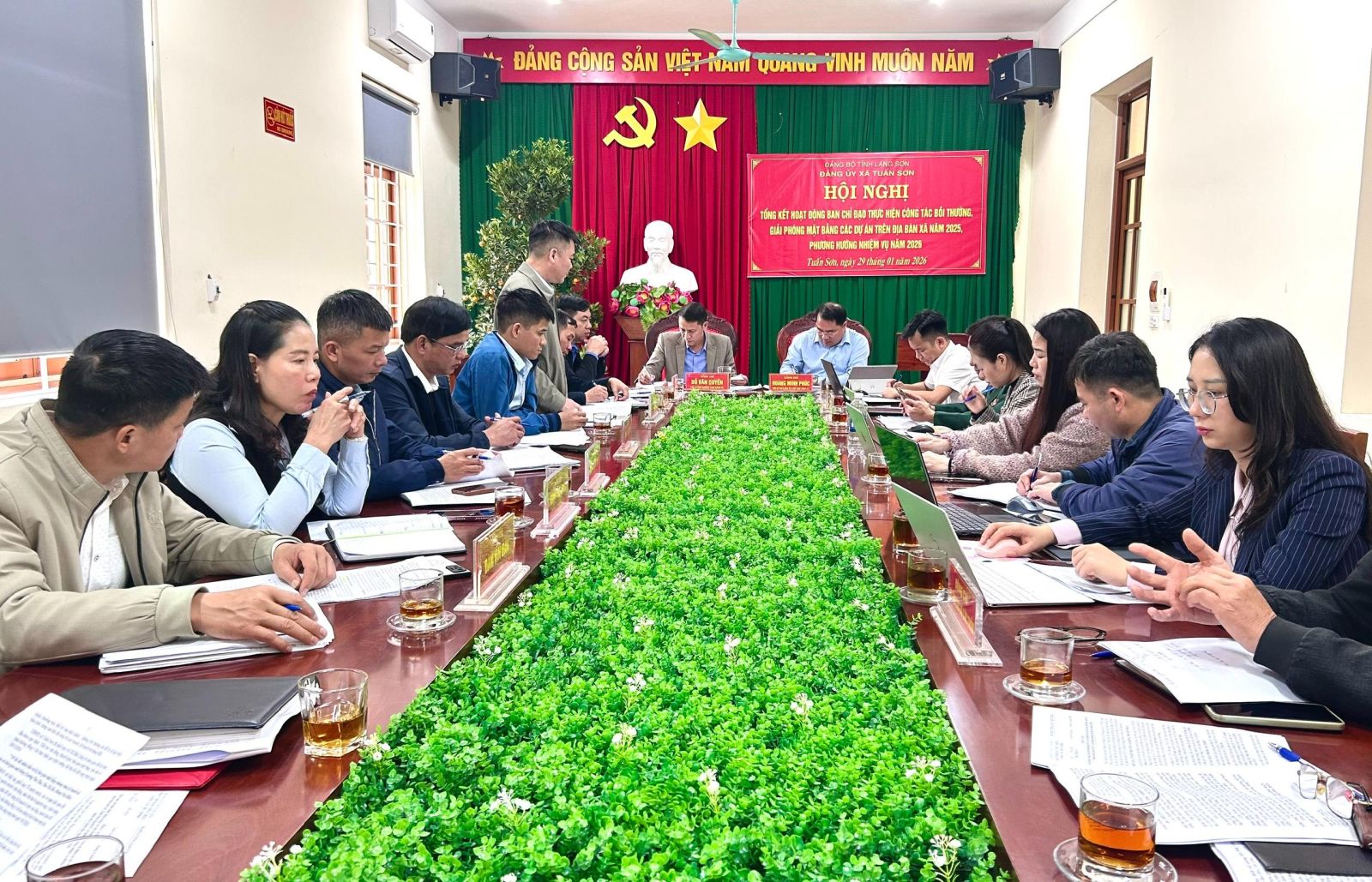 Chiều ngày 29/01, Ban chỉ đạo thực hiện công tác bồi thường, giải phóng mặt bằng (GPMB) các Dự án xã Tuấn Sơn tổ chức Hội nghị tổng kết hoạt động năm 2025, triển khai phương hướng nhiệm vụ năm 2026. Dự Hội nghị có các đồng chí trong Ban chỉ đạo, đại diện lãnh đạo Ban quản lý dự án khu vực VI, lãnh đạo Công ty TNHH VSIP Lạng Sơn, Bí thư chi bộ các thôn Na Hố, Xóm Chùa và Suối Ngang II.